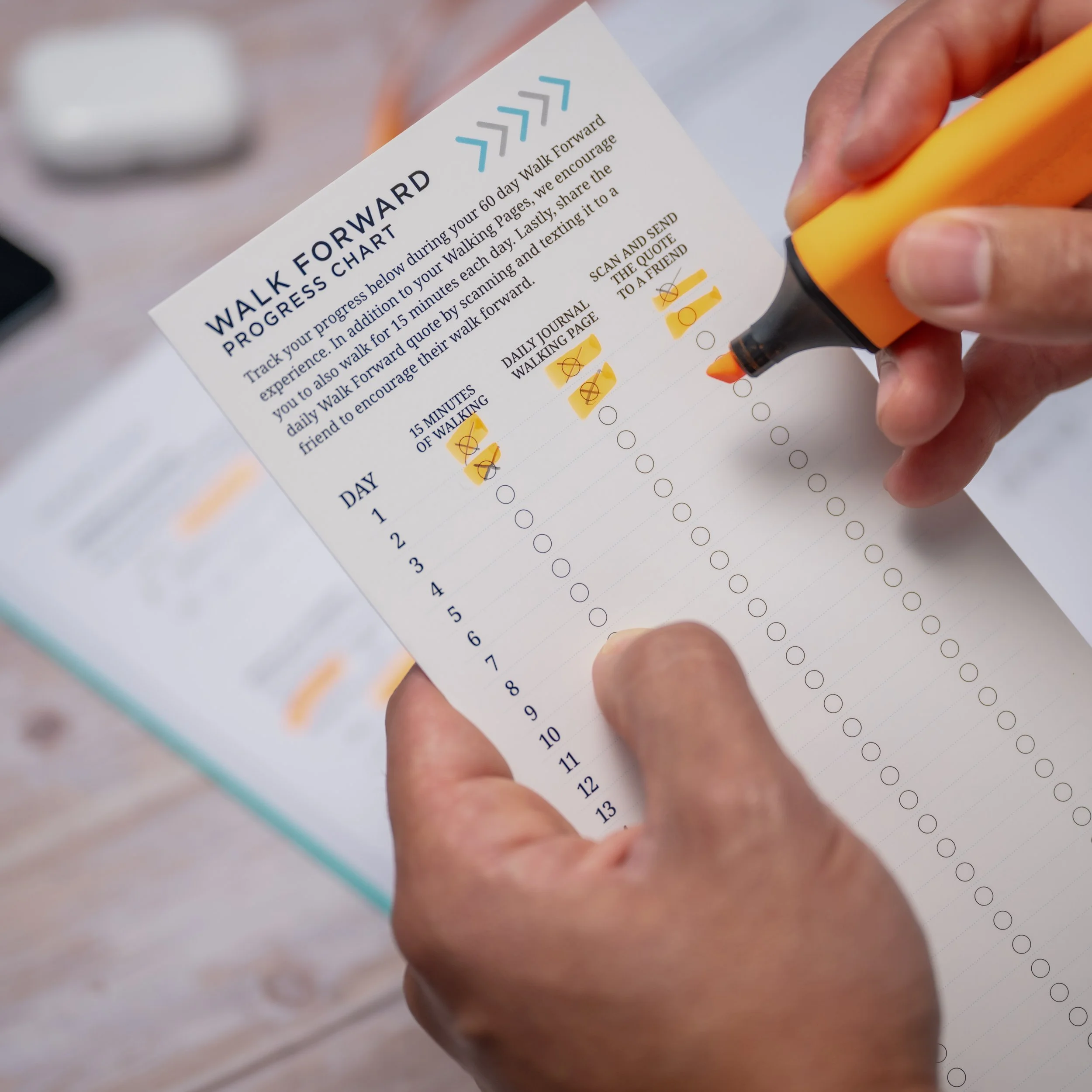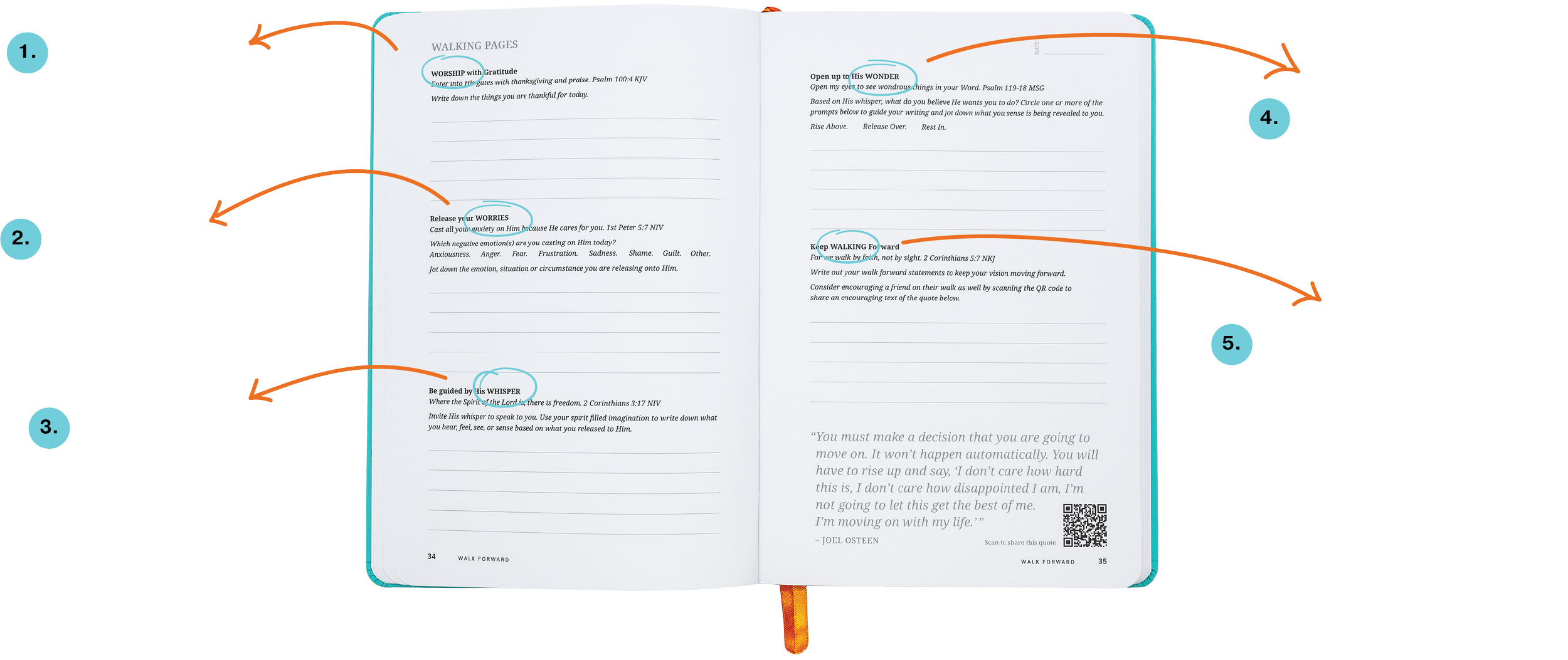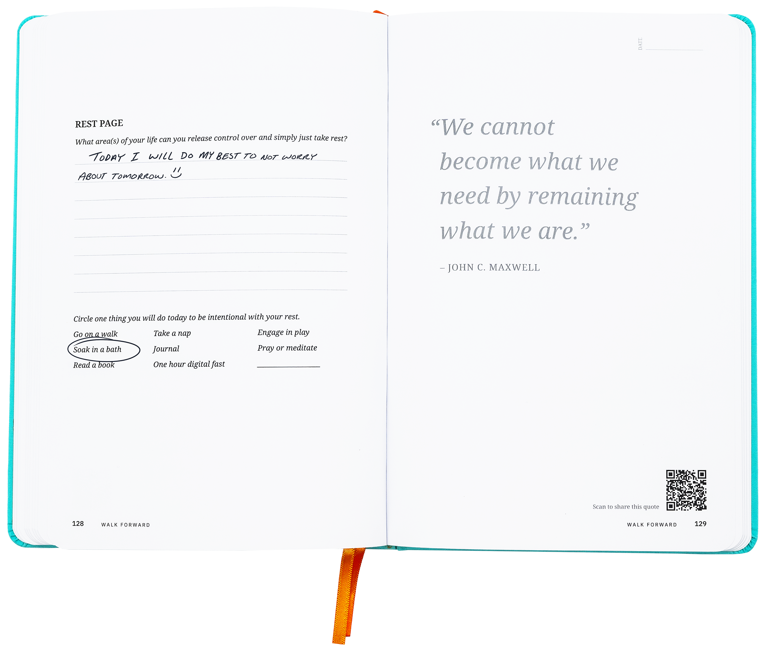 The QR Codes on each Walk Forward Journal spread will take you to a sharable image that you can send to a friend with just a few clicks to give them inspiration.